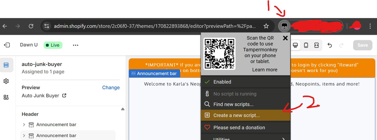 Step 2. Click the extension icon and click "Create a new script"